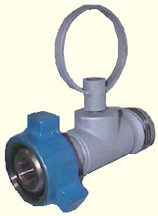 wing nut high pressure (15,000 psi) turbine flowmeter for gas service.